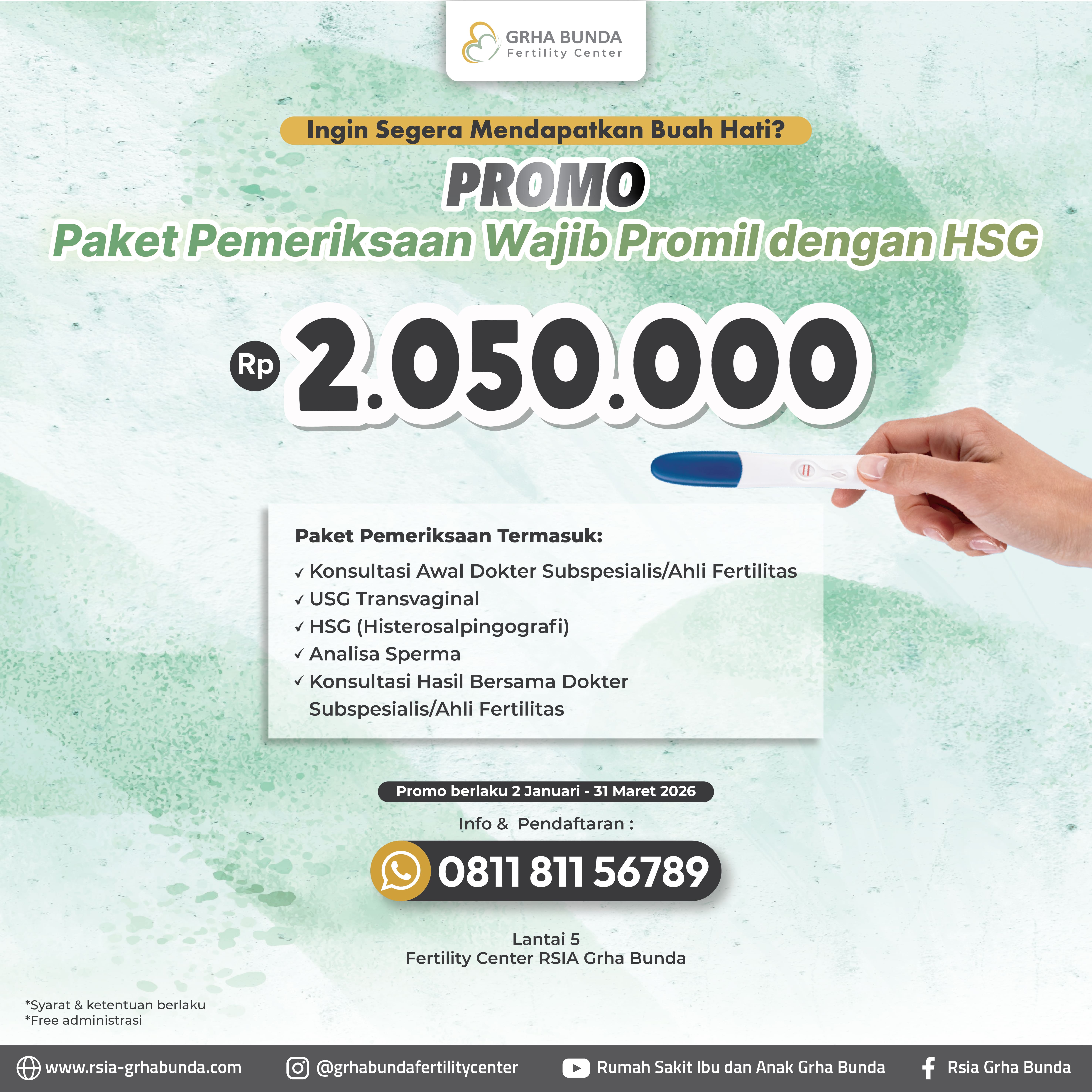 Promo Paket Pemeriksaan Promil 2026 kini hadir kembali di Grha Bunda Fertility Center 🤍